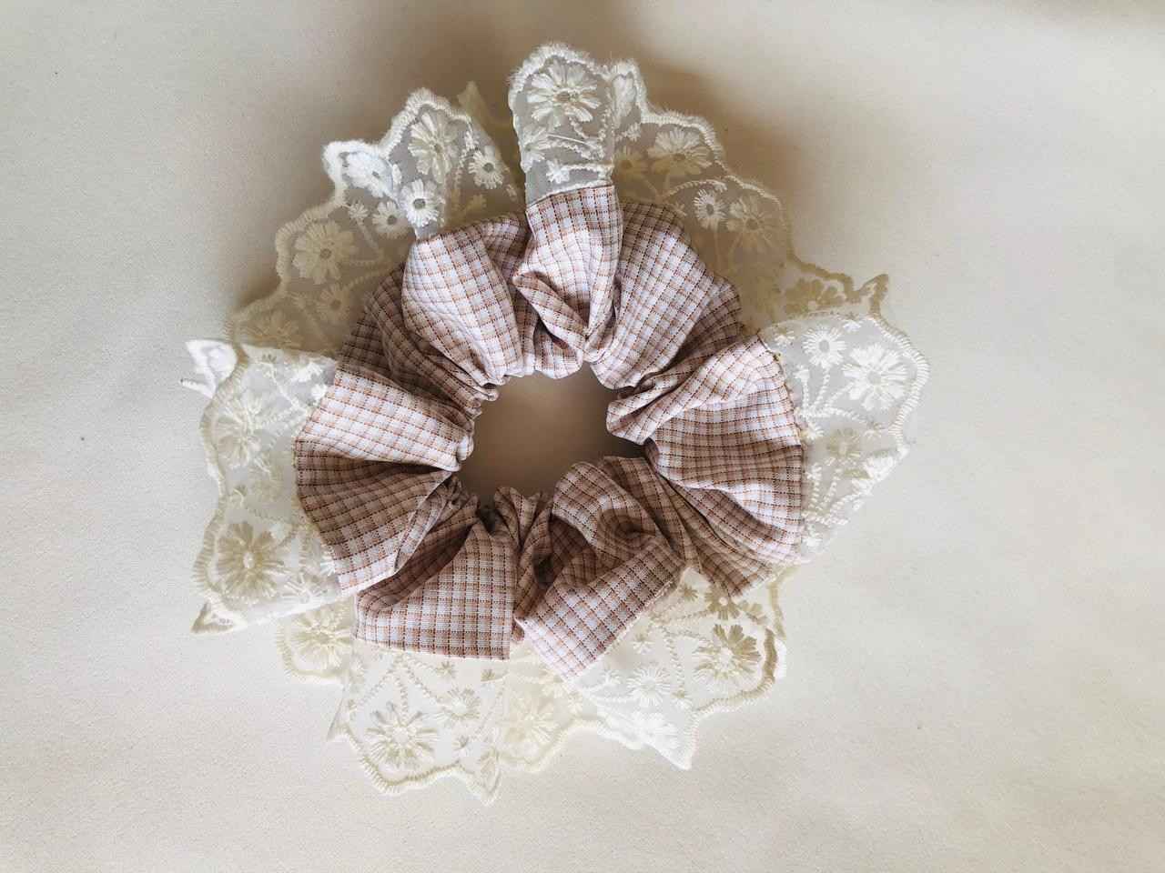 Add a touch of artistry to your everyday look with our Handmade ruffled lace Scrunchie, thoughtfully designed to bring together comfort, beauty, and tradition. Crafted from soft, durable fabric, each scrunchie is carefully made with a choice of cheque fabrics ,adding elegance with lace on the boudary that make it stand out as more than just a hair accessory—it’s a little piece of wearable art.
