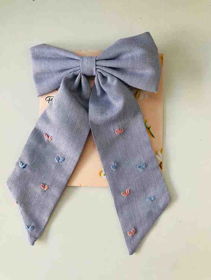 The embroidery is done with fine threads that highlight subtle patterns without overwhelming the fabric, giving the bow a graceful balance between elegance and minimalism.